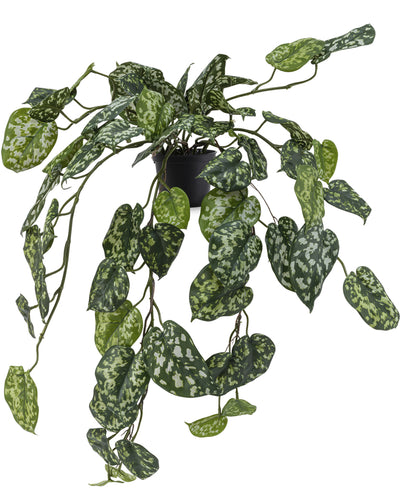 De kunst hangplant Scindapsus is zorgvuldig ontworpen met hoogwaardige materialen die zorgen voor een realistische en natuurlijke uitstraling. De hartvormige, glanzende bladeren met hun kenmerkende groene en zilveren tinten geven deze plant een verfijnde en levendige look. De plant is duurzaam en kleurvast, zodat je jarenlang kunt genieten van zijn groene pracht zonder dat de bladeren verkleuren of verwelken.