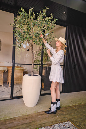 Breng de mediterrane charme in huis met deze majestueuze kunst olijfboom van 200 cm! Deze levensechte en elegante olijfboom is de perfecte manier om jouw interieur een verfijnde en natuurlijke uitstraling te geven. Ideaal voor jouw woonkamer, kantoor, of als decoratie in de hal, deze kunstplant voegt een vleugje rust en natuur toe zonder het gedoe van onderhoud.