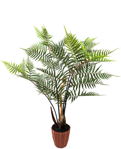Onze Kunst Varen Deluxe is een natuurgetrouwe weergave van een echte varen, waarbij geen enkel detail over het hoofd is gezien. Van het ingewikkelde varenbladpatroon tot de artistieke bochten van de takken - alles draagt bij aan een verbazingwekkend realistisch uiterlijk. Het groen van de bladeren is levendig en toch subtiel, net als bij een echte plant. Maar geen zorgen, deze kunstplant heeft geen water of zonlicht nodig om zijn prachtige kleur en textuur te behouden!