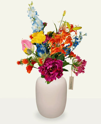 Natuurlijk is het grootste voordeel dat je met dit kunstboeket een prachtig, kleurrijk en levensecht boeket bloemen in huis haalt zonder de verborgen kosten van echte bloemen. Denk aan alle tijd, aandacht en geld die je bespaart door te kiezen voor deze prachtige kunstplant.