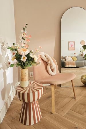 Met een indrukwekkende hoogte van 72 cm, voegt dit kunstboeket Powder Blush onmiddellijk een opvallend element toe aan elke ruimte, of het nu gaat om een woonkamer, een hal of een ontvangstruimte. De zachte roze tinten gecombineerd met de natuurgetrouwe bladvormen en -details brengen een element van de natuur in je ruimte. Het is een ideale keuze voor mensen met een druk schema, omdat je niet regelmatig hoeft te snoeien, water geven of wieden.