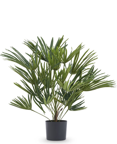 De kunstplant Baby Palm Fan in pot is 50 cm hoog en brengt een vleugje groen in huis zonder onderhoud. Met zijn compacte formaat en gedetailleerde palmbladeren voegt deze kunstplant een natuurlijke uitstraling toe aan elke ruimte.