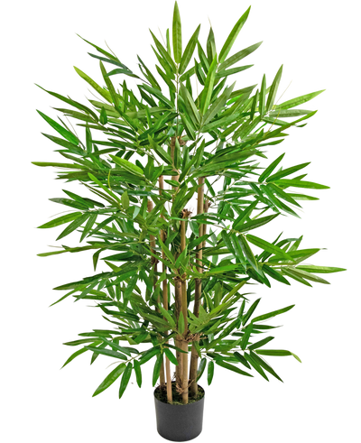 Deze namaak bamboe is nauwkeurig vervaardigd om de natuurlijke uitstraling van een echte bamboeplant na te bootsen. De stengels zijn gemaakt van hoogwaardig kunststof en vertonen de typische segmenten die je ook bij echte bamboe terugvindt. De bladeren zijn uitgevoerd in verschillende tinten groen, van licht naar donker, wat de plant een extra levensechte uitstraling geeft. Met een hoogte van 120cm is deze kunstplant een opvallende aanvulling op elk interieur.