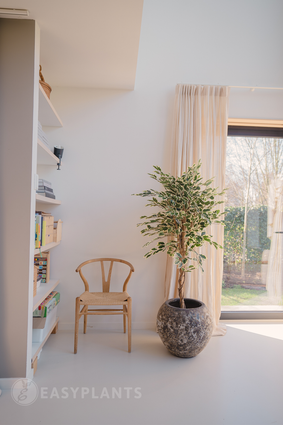 Onze kunstplanten zijn nauwelijks van echt te onderscheiden dankzij het gebruik van hoogwaardig polyester en stammen van echt hout, wat zorgt voor een natuurlijke uitstraling. Ze vergen weinig onderhoud; af en toe afnemen met een zachte borstel of vochtige doek houdt ze fris en mooi. Met een levensduur van 10 tot 15 jaar zijn onze kunstplanten bovendien een duurzame en langdurige keuze.