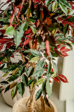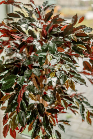 De van oorsprong uit Afrika komende Ficus is een zeer populaire kamerplant, met name door de vele soorten en maten. Deze ficus groen/rood geeft sfeer aan iedere ruimte zoals vele van onze ficussen. Deze kunstplant ficus kenmerkt zich door een volle bos bladeren die variëren in de kleuren groen en rood waardoor de plant natuurgetrouw aandoet. De ficus beschikt tevens over een echte houten stam en is geschikt voor ieder interieur binnenshuis.