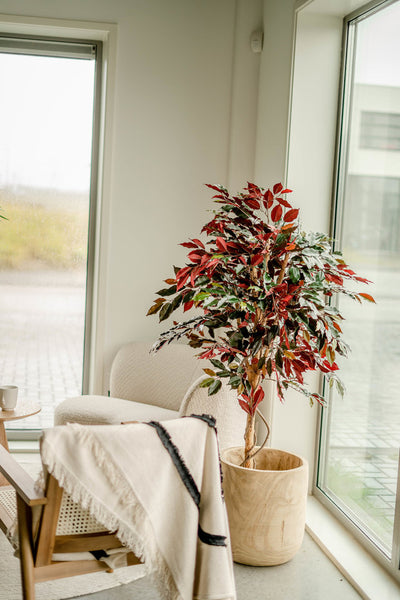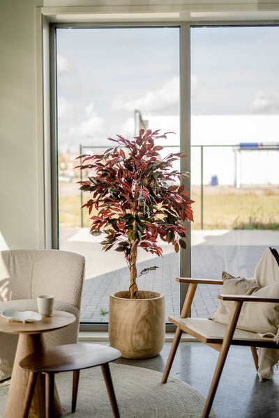 Onze kunstplanten zijn nauwelijks van echt te onderscheiden dankzij het gebruik van hoogwaardig polyester en stammen van echt hout, wat zorgt voor een natuurlijke uitstraling. Ze vergen weinig onderhoud; af en toe afnemen met een zachte borstel of vochtige doek houdt ze fris en mooi. Met een levensduur van 10 tot 15 jaar zijn onze kunstplanten bovendien een duurzame en langdurige keuze.