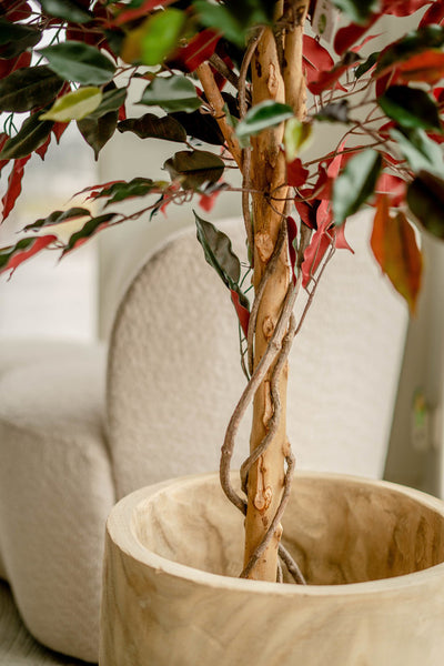 Onze kunstplanten zijn bijna niet van echt te onderscheiden. Ze zijn gemaakt van hoogwaardig kunststof dat niet verkleurt, en de stammen zijn vervaardigd van echt hout, wat een bijzonder natuurlijke uitstraling geeft.
