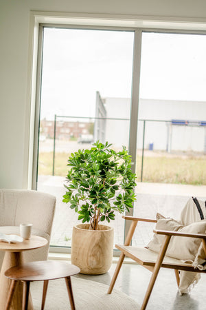 Onze kunstplanten zijn nauwelijks van echt te onderscheiden dankzij het gebruik van hoogwaardig polyester en stammen van echt hout, wat zorgt voor een natuurlijke uitstraling. Ze vergen weinig onderhoud; af en toe afnemen met een zachte borstel of vochtige doek houdt ze fris en mooi. Met een levensduur van 10 tot 15 jaar zijn onze kunstplanten bovendien een duurzame en langdurige keuze.