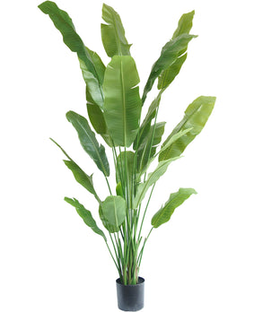 Breng een indrukwekkende tropische sfeer in je interieur met onze Kunstplant Strelitzia Nicolai van 210 cm. Deze majestueuze kunstplant, ook bekend als witte paradijsvogelbloem, is zorgvuldig ontworpen om de weelderige en unieke uitstraling van een echte Strelitzia Nicolai na te bootsen, zonder het onderhoud dat levende planten vereisen.