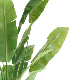 • Natuurlijke uitstraling: De Kunstplant Strelitzia Nicolai heeft levensechte bladeren en een gedetailleerde stam, waardoor hij nauwelijks van een echte Strelitzia Nicolai te onderscheiden is.